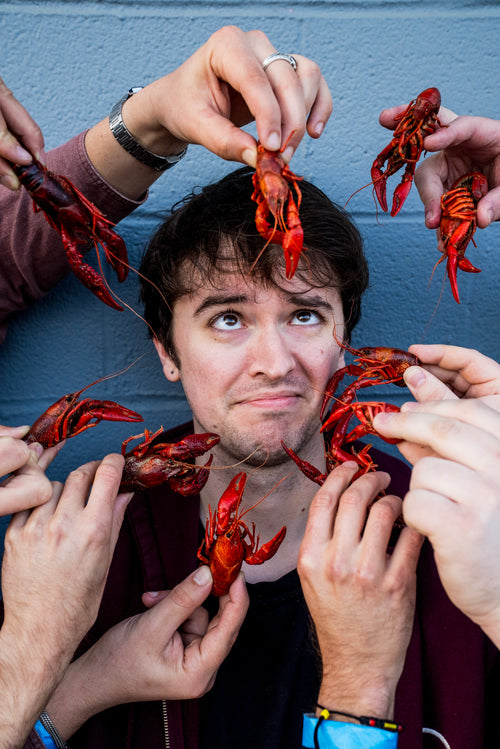 B&W photo of person holding up a