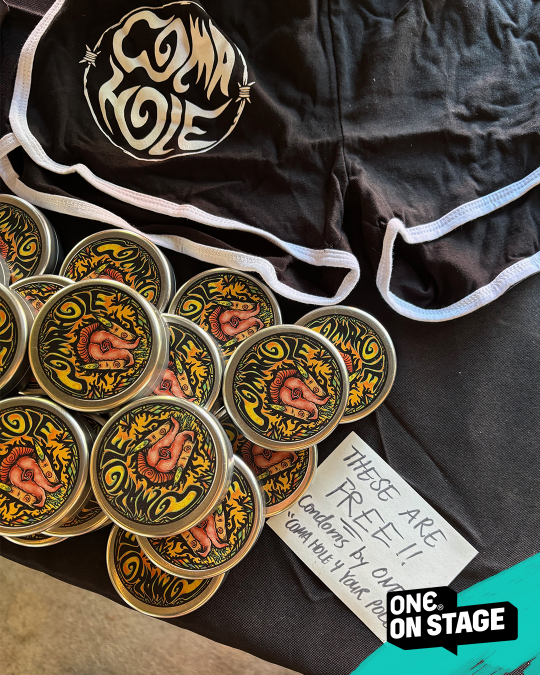 - You distribute the products to fans at your shows and events. This can be as simple as having the products displayed on your merch table, using them as an incentive for fans to buy merch (free ONE® tin with the purchase of a t-shirt), or handing them out with flyers for upcoming shows!